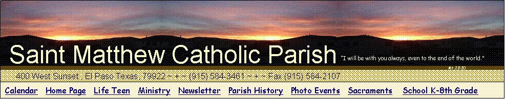Reconciliation Sat – 4-5pm or by Appointment Bible Study Divine Mercy Knights of Columbus Legion of Mary Baptisms, Baptismal Classes Parent Life Prayer Chain Women’s Auxiliary 4Him The Best in Country Music 1996.2 |