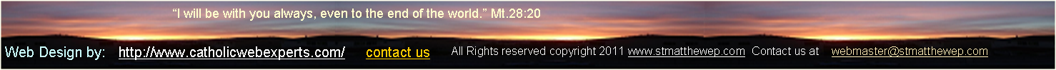 Saint Matthew Catholic Parish 400 West Sunset , El Paso Texas, 79922 ~ + ~ (915) 584-3461 ~ + ~ Fax (915) 584-2107 |