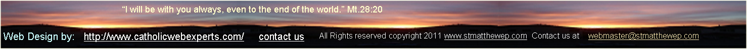 Saint Matthew Catholic Parish 400 West Sunset , El Paso Texas, 79922 ~ + ~ (915) 584-3461 ~ + ~ Fax (915) 584-2107 |