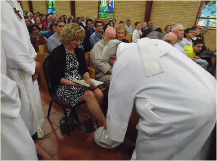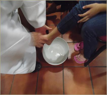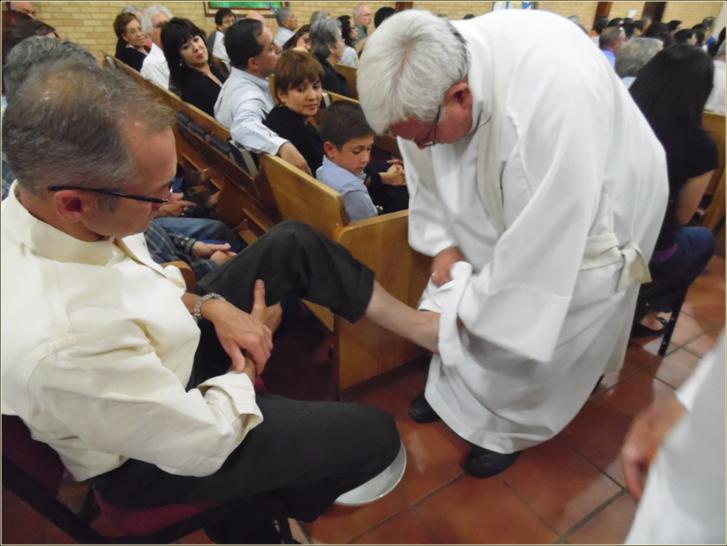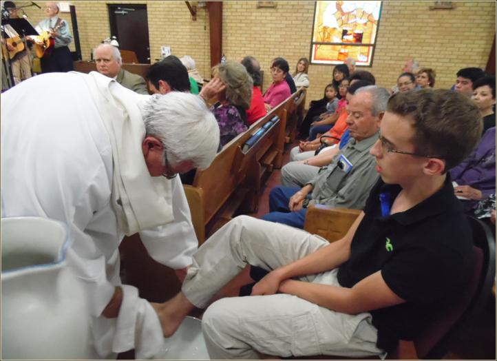 Rev. Msgr. David G Fierro on Holy Thursday April 17, 2014 at St. Matthew Parish. Fr. David washes the feet of St Matthew Parish Members of the RCIA Adult & two students participated in the feet washing. |