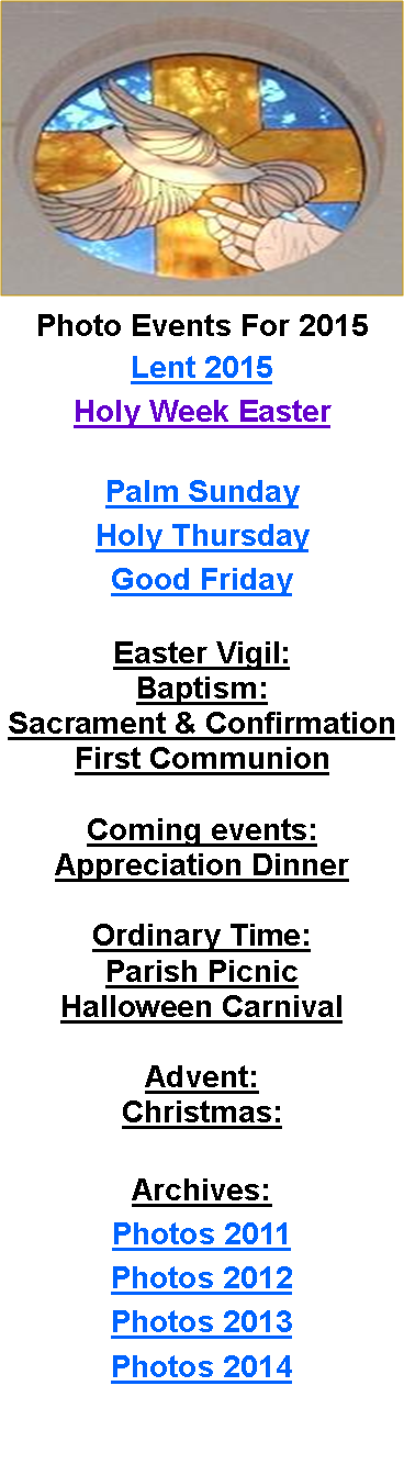 Calendar Home Page Life Teen Ministry Newsletter Parish History Photo Events Sacraments School K-8th Grade Sound Track
