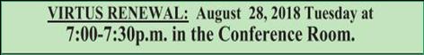 Reconciliation Sat – 4-5pm or by Appointment Bible Study Divine Mercy Knights of Columbus Legion of Mary Baptisms, Baptismal Classes Parent Life Prayer Chain Women’s Auxiliary Point of Grace Steady On 1998.1 |